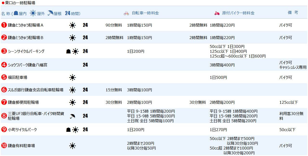 鎌倉駅(東口)おすすめ一時駐輪場5選!