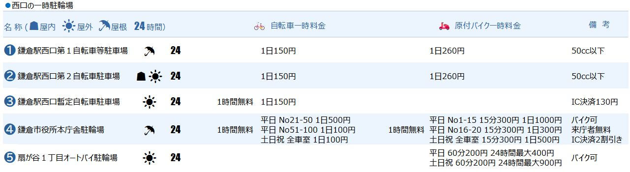 鎌倉駅(西口)おすすめ一時駐輪場5選!