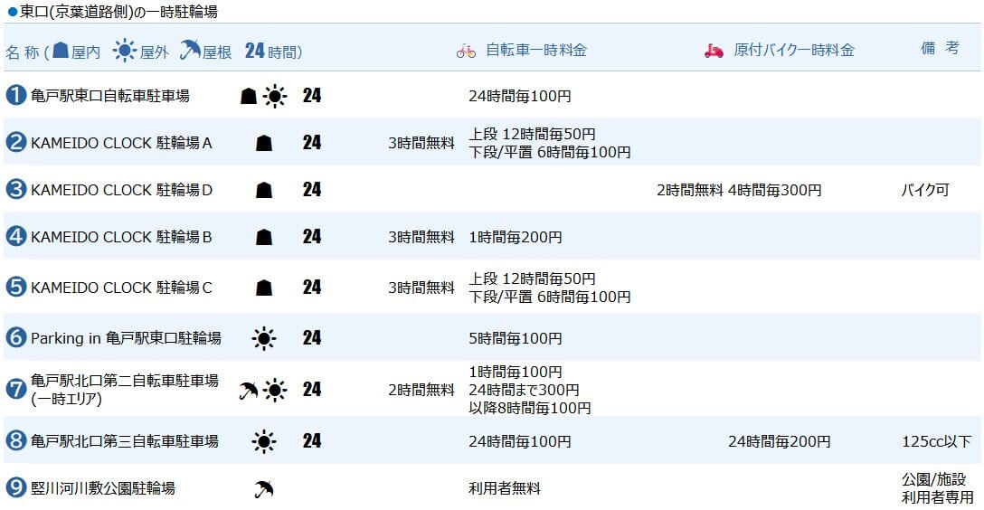 亀戸駅の一時駐輪場まとめ(一覧マップ/料金リスト/各駐輪場プロフィール)