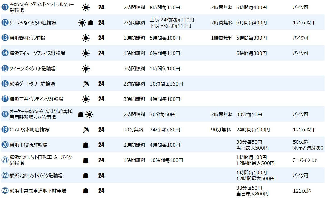 みなとみらいの一時駐輪場まとめ(一覧マップ/料金リスト/各駐輪場プロフィール)