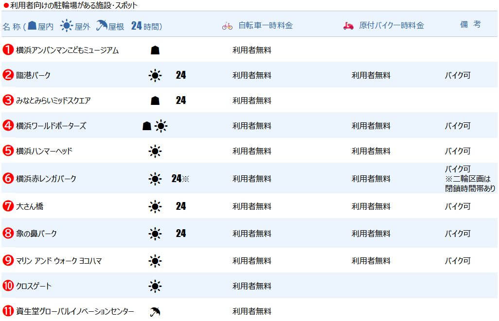 みなとみらいエリアの無料駐輪場まとめ(一覧マップ・リスト・各駐輪場プロフィール)