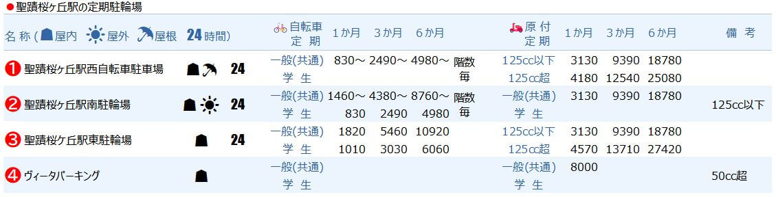 聖蹟桜ヶ丘駅の月極駐輪場まとめ(一覧マップ/料金リスト/各駐輪場プロフィール)