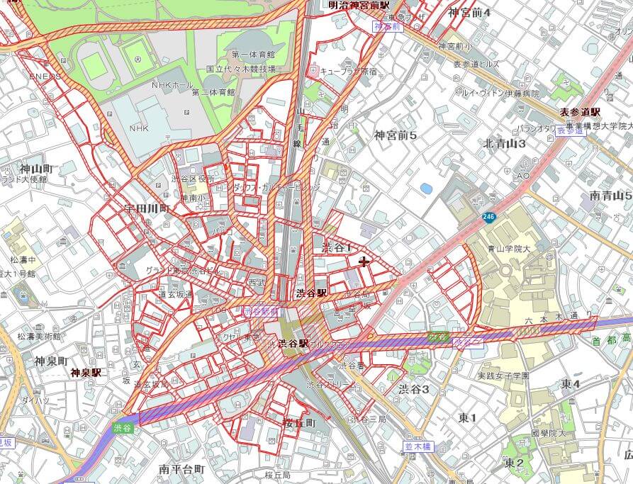 | 住所 | 南 東京都渋谷区渋谷1-26-5 北 東京都渋谷区神宮前6-20-10 |