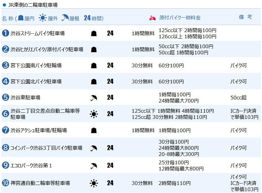 渋谷駅(JR東側)おすすめバイク一時駐輪場6選!