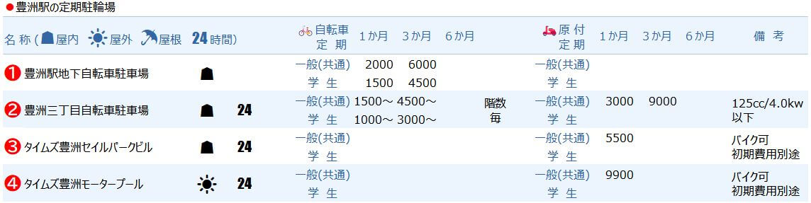 豊洲定期駐輪場まとめ(一覧マップ/料金リスト/各駐輪場プロフィール)